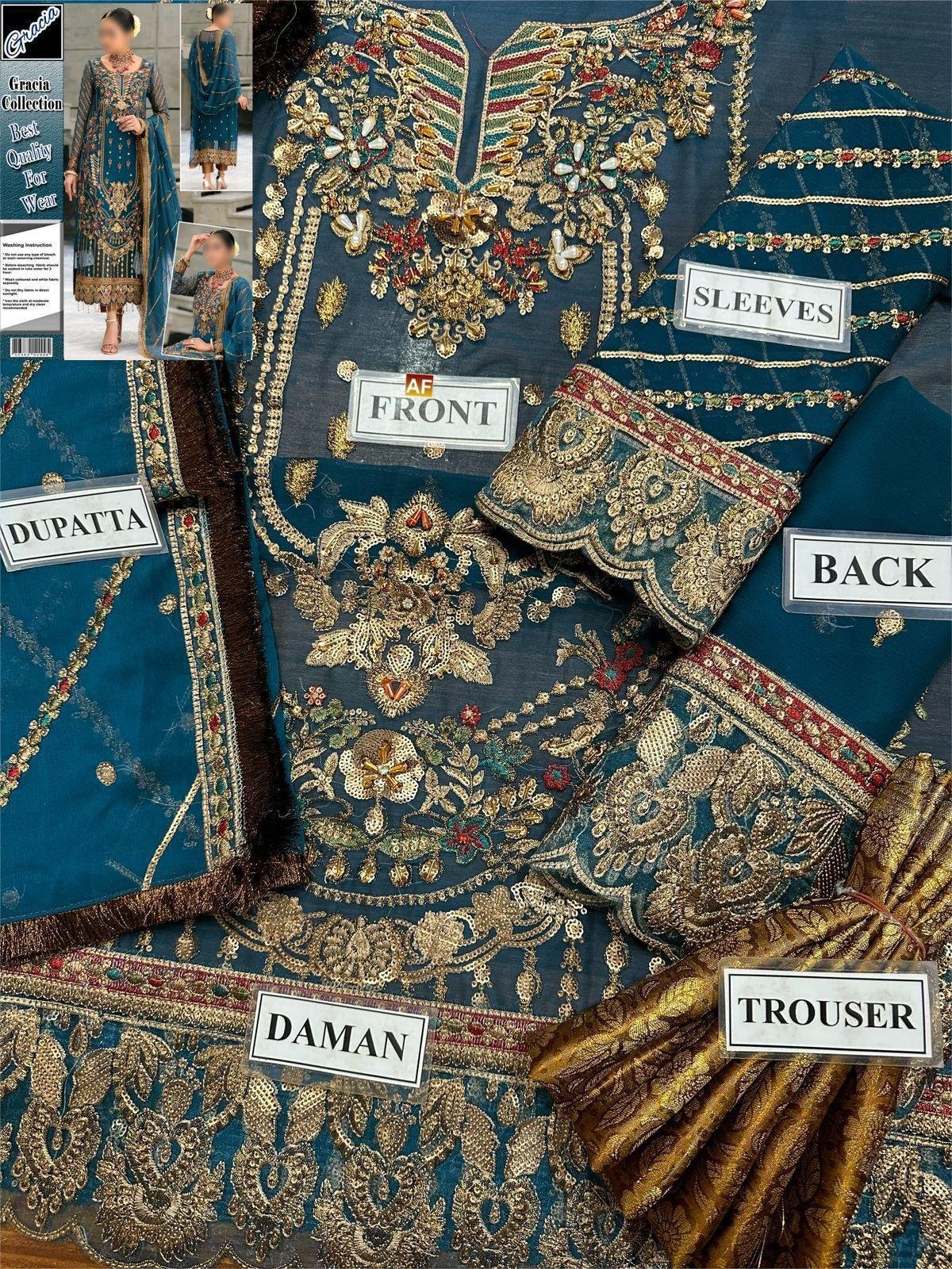 Full Front Embroidered With Sequence & ADDA Work